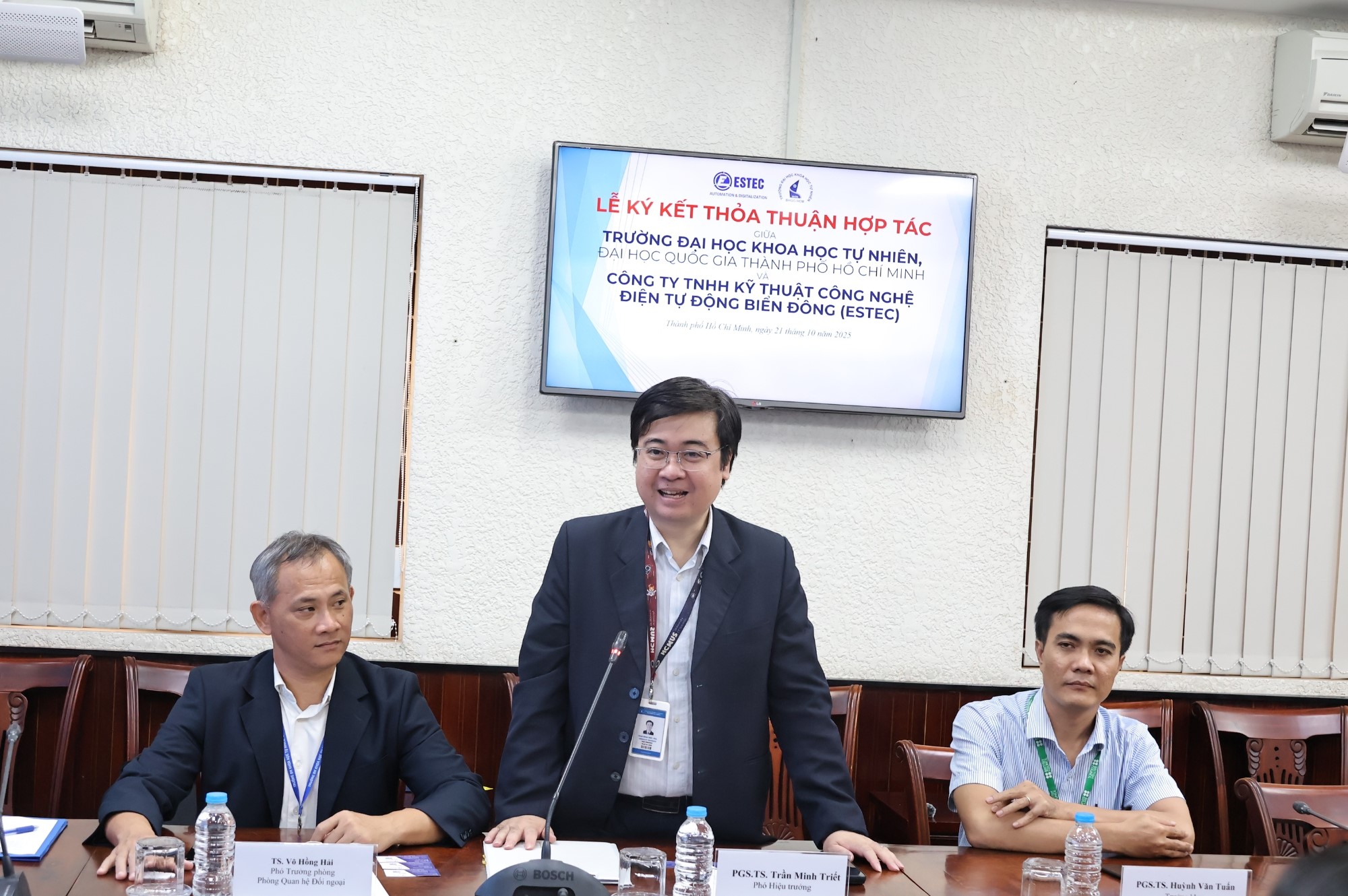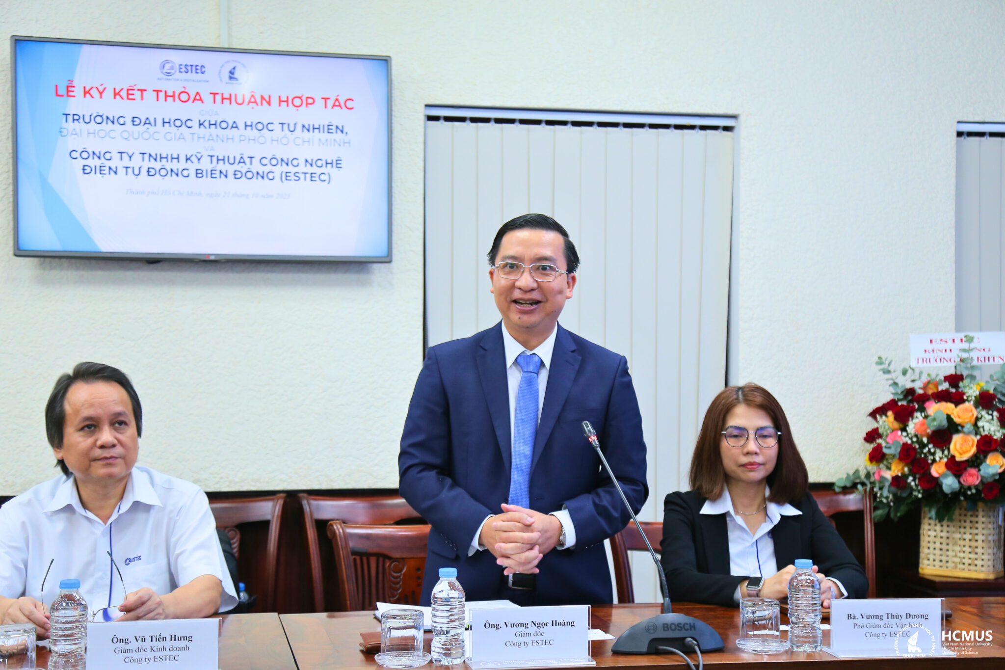 Sáng ngày 21/10, tại cơ sở Nguyễn Văn Cừ, Trường Đại học Khoa học tự nhiên, ĐHQG-HCM, Công ty TNHH Kỹ thuật Công nghệ Điện Tự động Biển Đông (ESTEC) và Nhà trường đã ký kết Thỏa thuận Hợp tác.