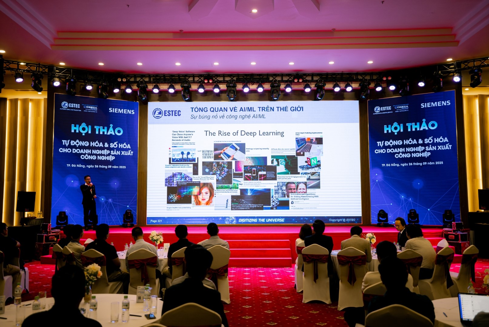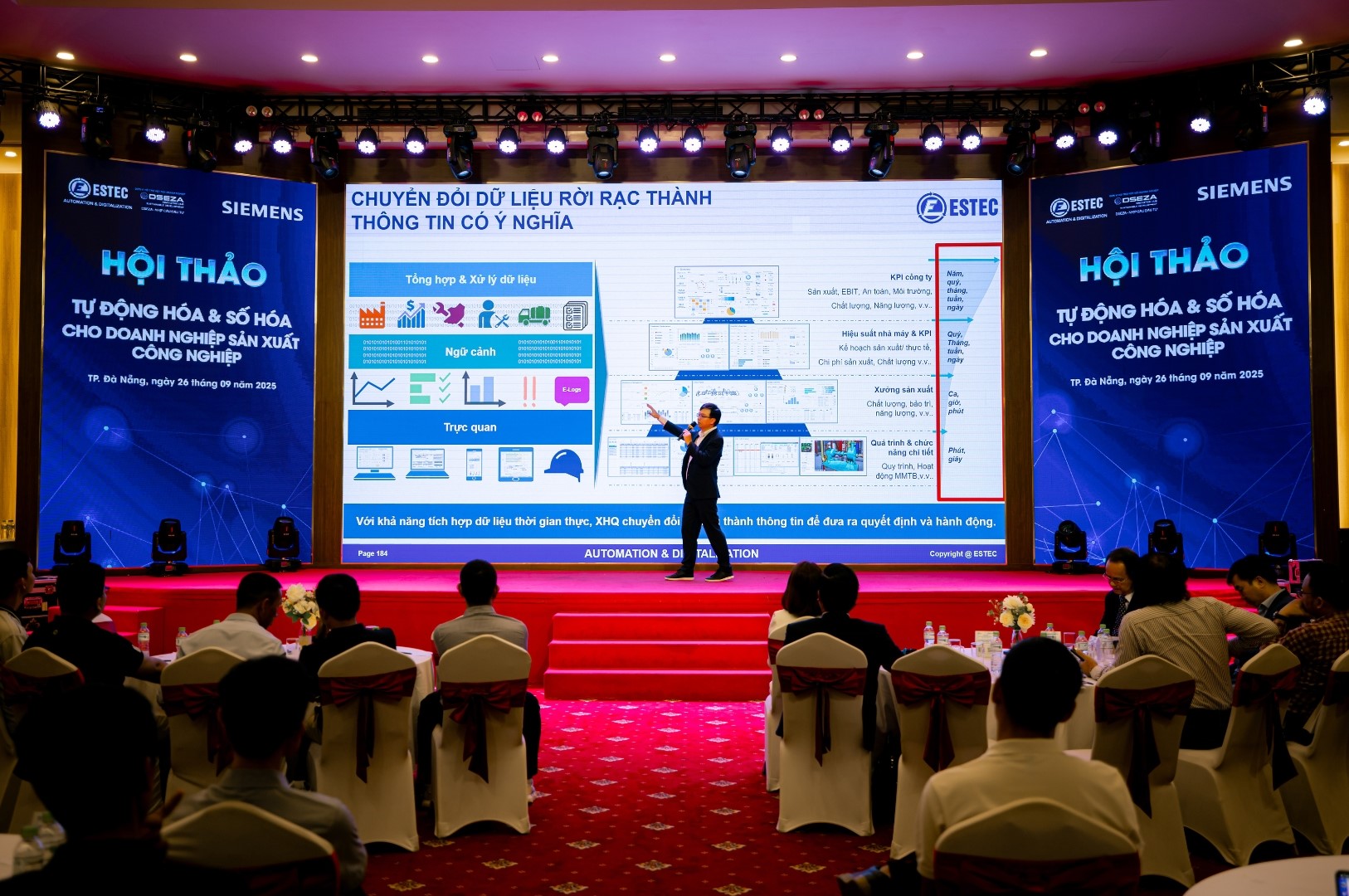 Ngày 26/09/2025, tại thành phố Đà Nẵng, Công ty ESTEC phối hợp cùng Siemens Việt Nam, với sự hỗ trợ kết nối doanh nghiệp từ Ban Quản lý Khu Công nghệ cao & các Khu công nghiệp Đà Nẵng, đã tổ chức thành công Hội thảo “TỰ ĐỘNG HÓA & SỐ HÓA CHO DOANH NGHIỆP SẢN XUẤT CÔNG NGHIỆP”. Sự kiện đã thu hút sự quan tâm đặc biệt của các Quý Lãnh đạo, các cấp quản lý và chuyên gia từ nhiều doanh nghiệp sản xuất trong khu vực.